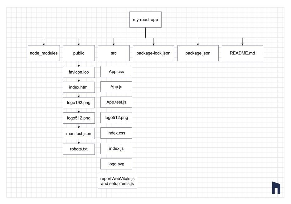 my-react-app is the name of the directory that will be created by this command. This directory will provide you with a basic structure for your React project.